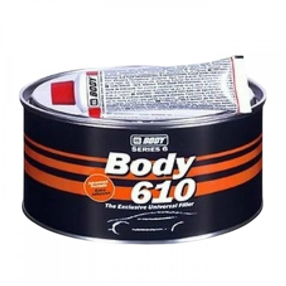 HB BODY 610 UNIVERSAL FILLER — двухкомпонентная наполняющая шпатлевка нового поколения на основе полиэфирных смол. Состав разработан для работы со всеми типами металлических, деревянных и полиэфирных поверхностей. Продукт отличается исключительно высокой скоростью полимеризации, пластичностью при нанесении и превосходными характеристиками шлифования, обеспечивая качественное восстановление геометрии деталей.