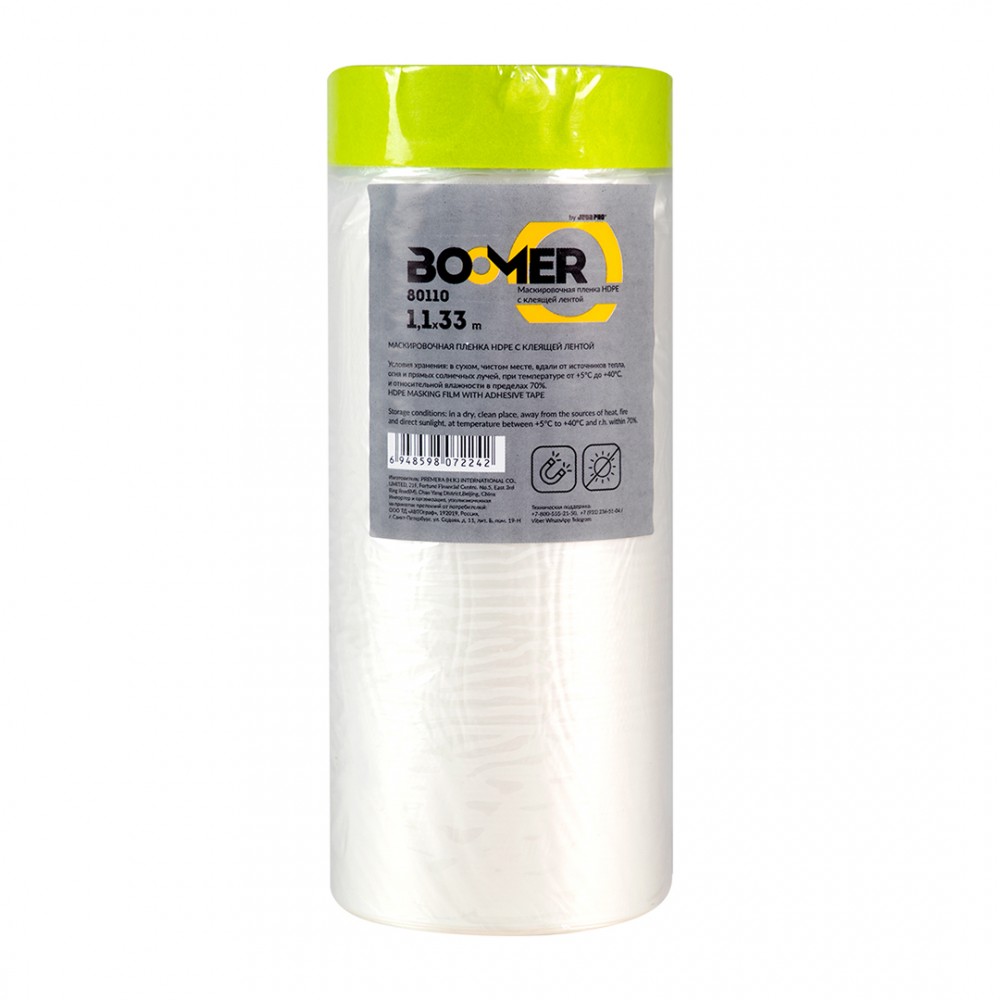 BOOMER MASKING FILM WITH TAPE | МАСКИРУЮЩАЯ ПЛЕНКА HDPE С КЛЕЙКОЙ ЛЕНТОЙ