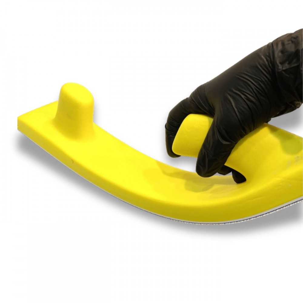 Русский Мастер РМ-90672 - гибкий шлифовальный блок без пылеотводаиз из полипропилена для шлифовки грунтов и шпатлевок на сферических и изогнутых поверхностях.